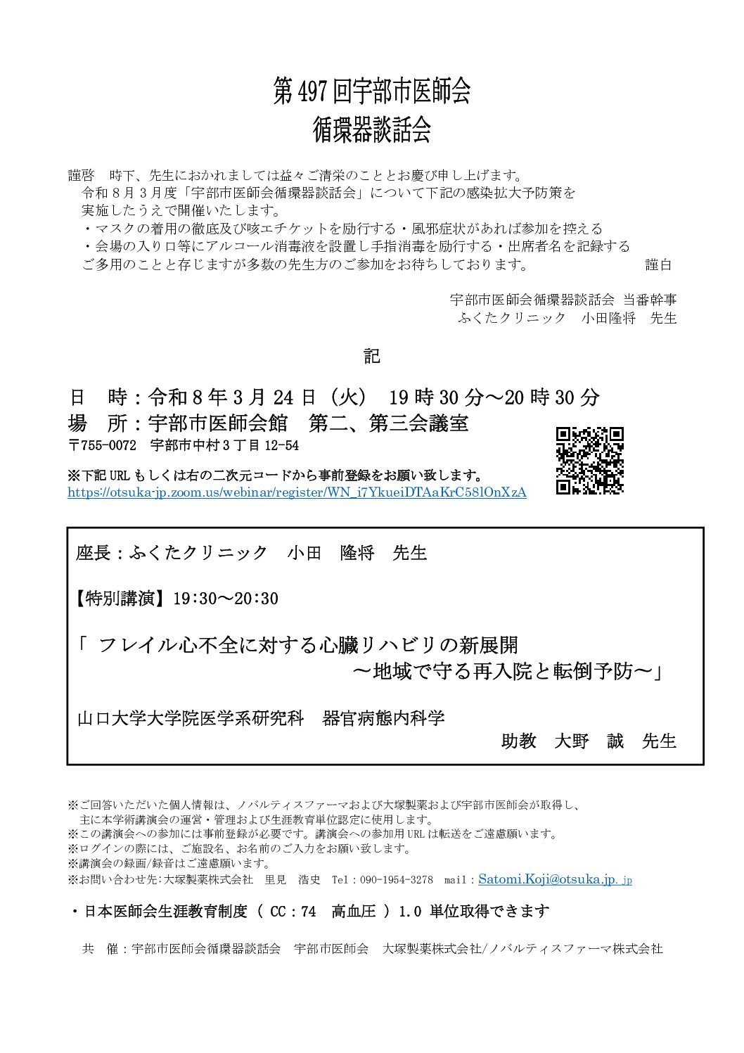 『 フレイル心不全に対する心臓リハビリの新展開~地域で守る再入院と転倒予防~ 』 山口大学大学院医学系研究科 器官病態内科学 助教 大野 誠 先生