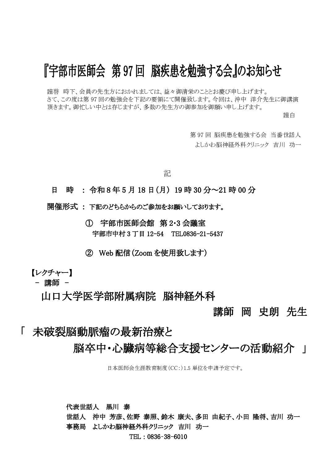 宇部市医師会 第97回 脳疾患を勉強する会(2026.5.18)