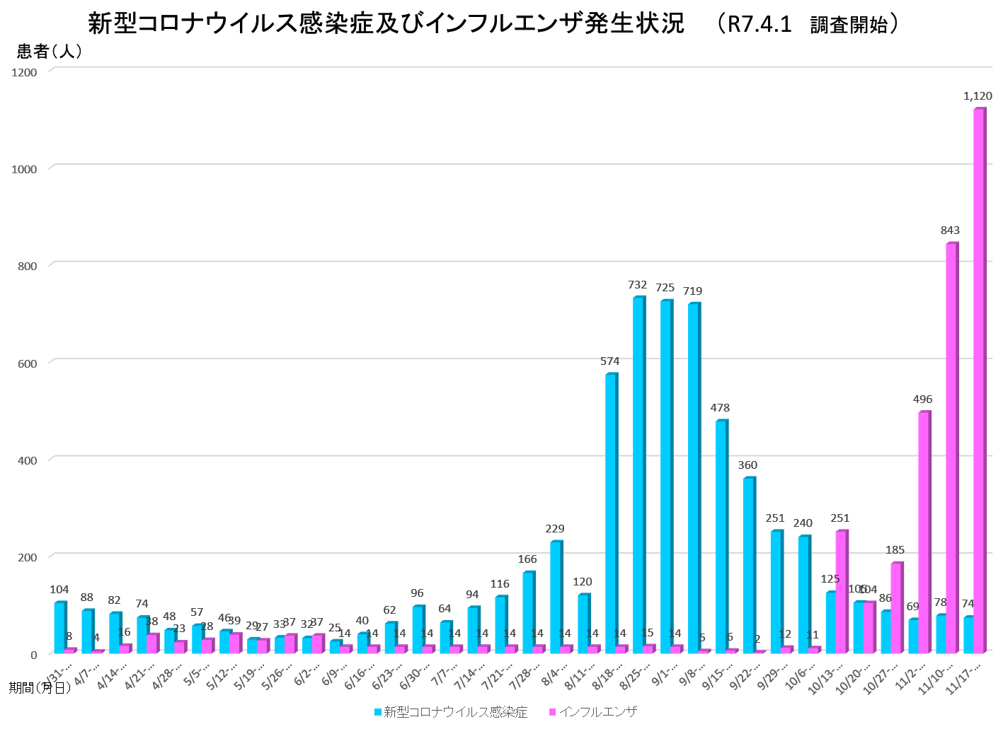 11月17日-11月23日の新型コロナウイルス感染症及びインフルエンザ発生状況を掲載しました。