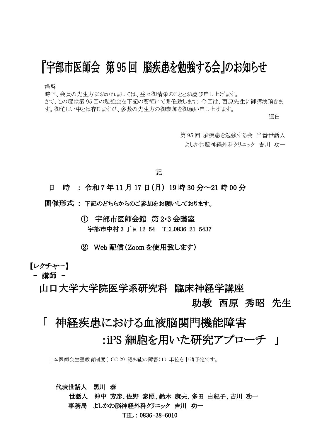宇部市医師会 第95回 脳疾患を勉強する会(2025.11.17)